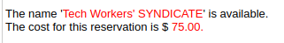 "*Tech Workers' Syndicate*" was only a placeholder I thought up at the spur of the moment. However, it seems to be shaping up to be a good name to just keep. - I think a big part of the inspiration came from the fact that I recently read *The Dispossessed* by Ursula K. Le Guin. It seems like the sort of thing an Anarresti would have named it, and that seems appropriate and nice :) - Delware Code, Title 8, subsection 102(a)(1) says > (The certificate of incorporation shall set forth) The name of the corporation, which shall contain 1 of the words “association,” “company,” “corporation,” “foundation,” “fund,” “incorporated,” “institute,” “society,” “union,” **“syndicate,”** or “limited"... So it may actually be nicer than something like Tech Workers' Cooperative, Inc. (because you don't need to tack on the extra "company", "association", "incorporated", whatever) On the other hand, using the phrase "worker cooperative" in the name immediately indicates that we are, in fact, a worker cooperative. Another consideration is SEO and domain choice (see #1)