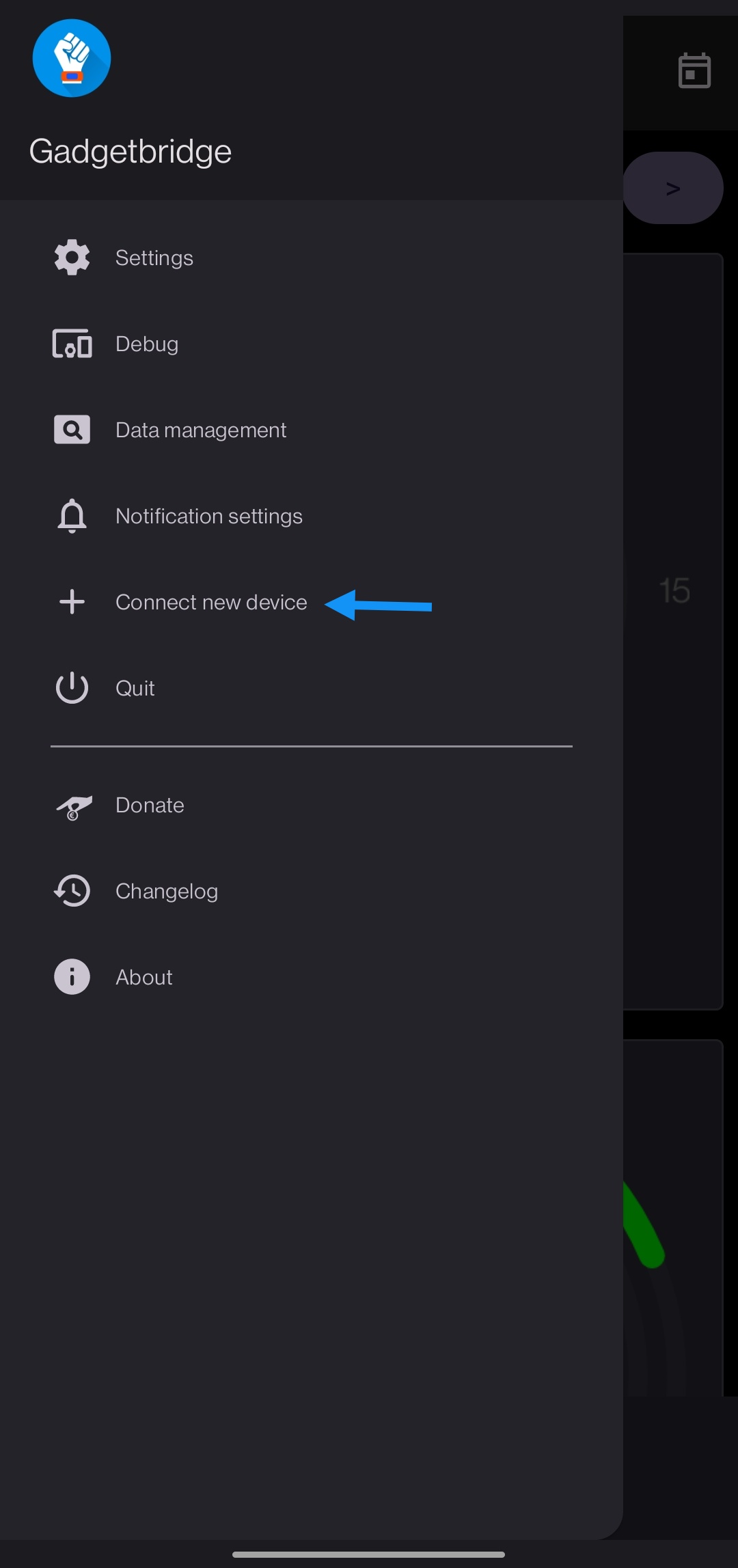Launch Gadgetbridge and tap on the menu button in the top left: